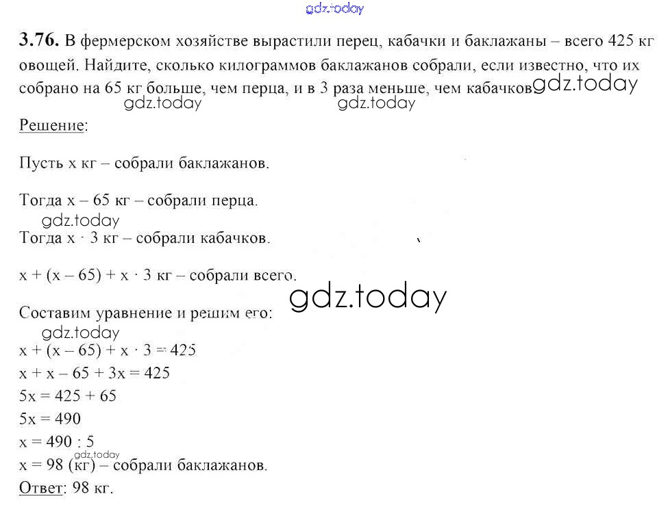 Ответы к Решение к главе 3 3.76 Учебнику по Алгебре для 7 класса Арефьева, Пирютко Народная асвета 2017