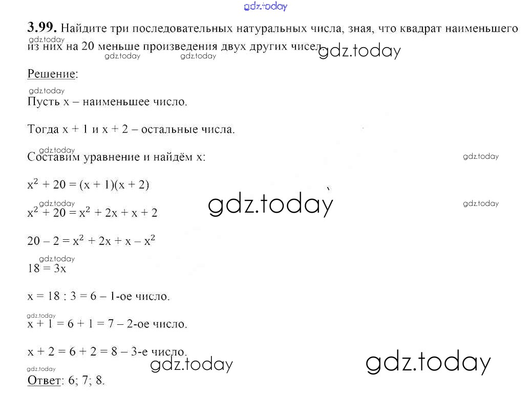Ответы к Решение к главе 3 3.99 Учебнику по Алгебре для 7 класса Арефьева, Пирютко Народная асвета 2017