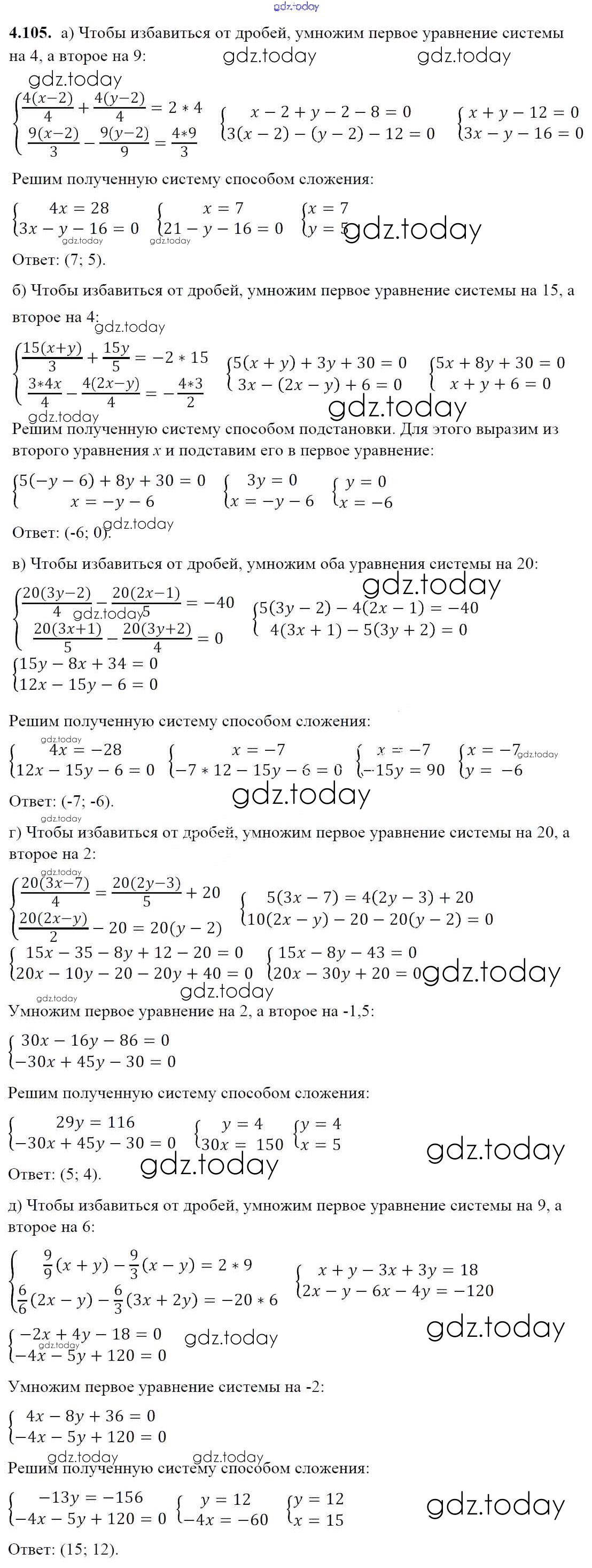 Ответы к Решение к главе 4 4.105 Учебнику по Алгебре для 7 класса Арефьева, Пирютко Народная асвета 2017