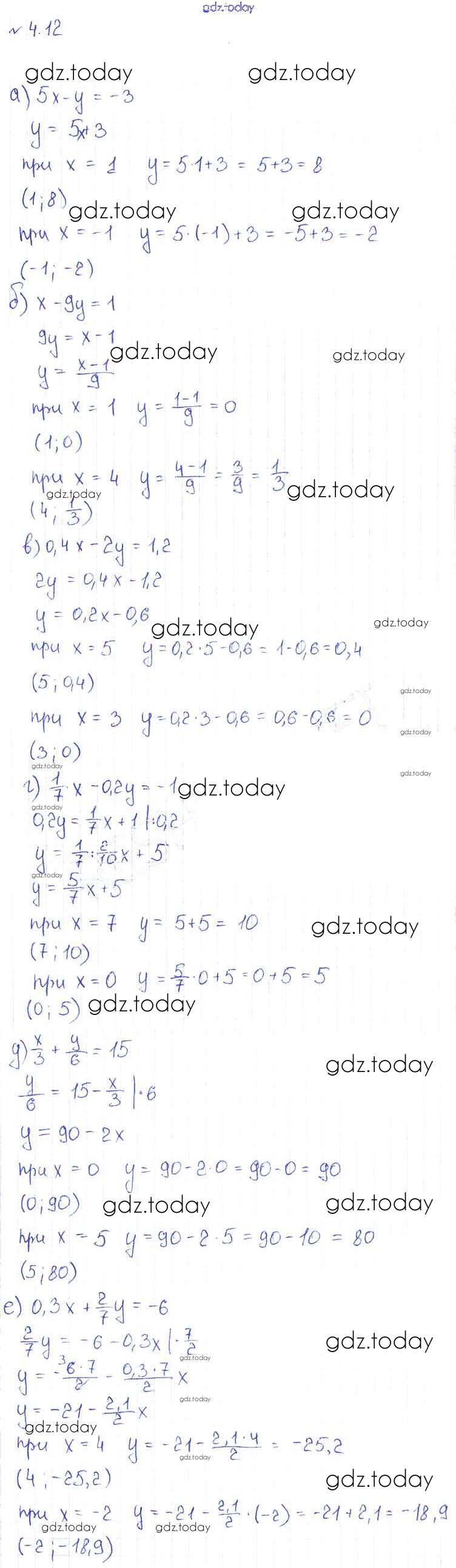 На страницах сайта gdz.today вы найдете учебный и вспомогательный материал, направленный на улучшения знаний школьной программы. ГДЗ - онлайн мир знаний Решение к главе 4 4.12 Учебнику по Алгебре для 7 класса Арефьева, Пирютко Народная асвета 2017