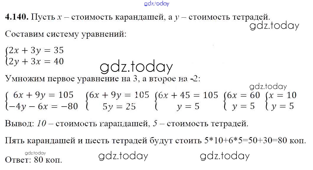 Ответы к Решение к главе 4 4.140 Учебнику по Алгебре для 7 класса Арефьева, Пирютко Народная асвета 2017