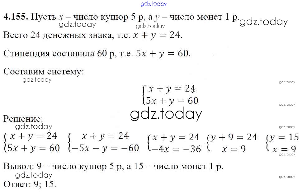 Ответы к Решение к главе 4 4.155 Учебнику по Алгебре для 7 класса Арефьева, Пирютко Народная асвета 2017