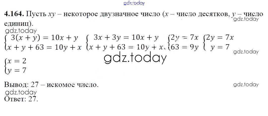 Ответы к Решение к главе 4 4.164 Учебнику по Алгебре для 7 класса Арефьева, Пирютко Народная асвета 2017