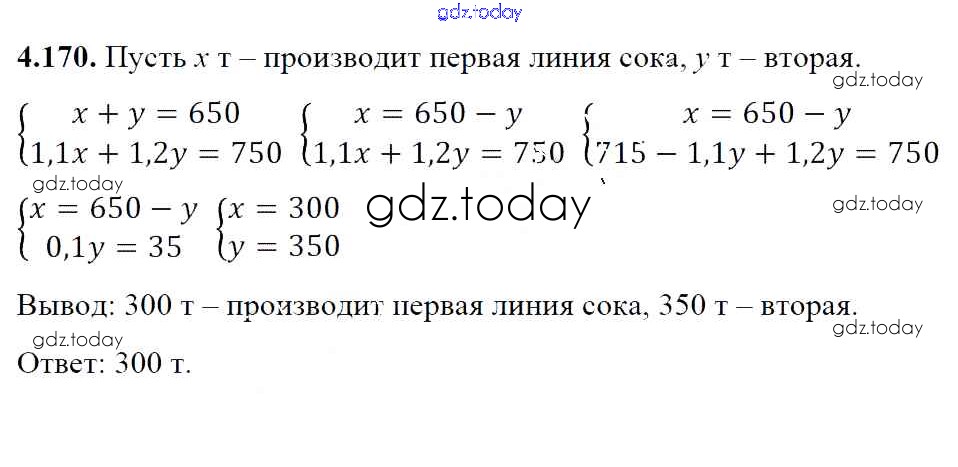 Ответы к Решение к главе 4 4.170 Учебнику по Алгебре для 7 класса Арефьева, Пирютко Народная асвета 2017