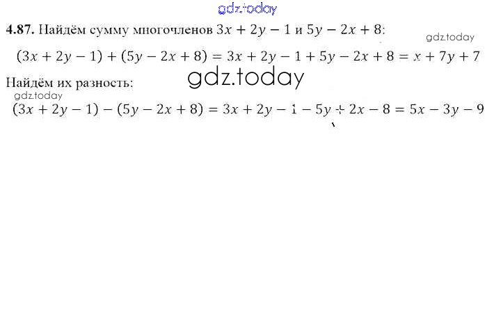 Ответы к Решение к главе 4 4.87 Учебнику по Алгебре для 7 класса Арефьева, Пирютко Народная асвета 2017