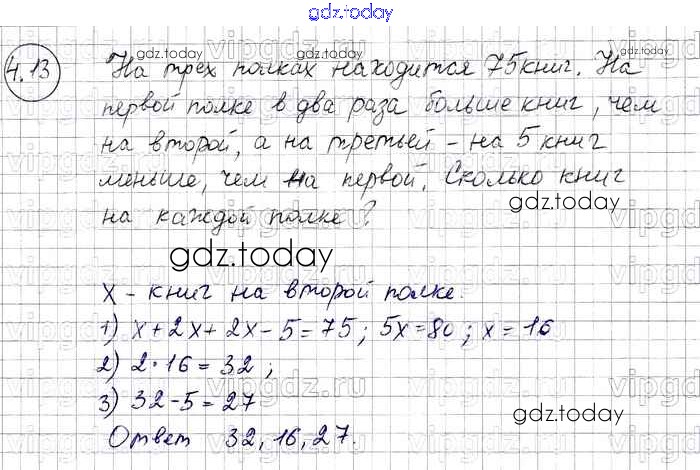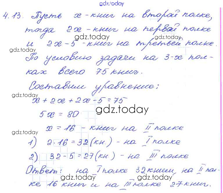 Ответы к § 4. Линейное уравнение с одной переменной Решение к главе 1 13 Задачнику по Алгебре для 7 класса Мордкович, Александрова Базовый уровень Мнемозина 2013
