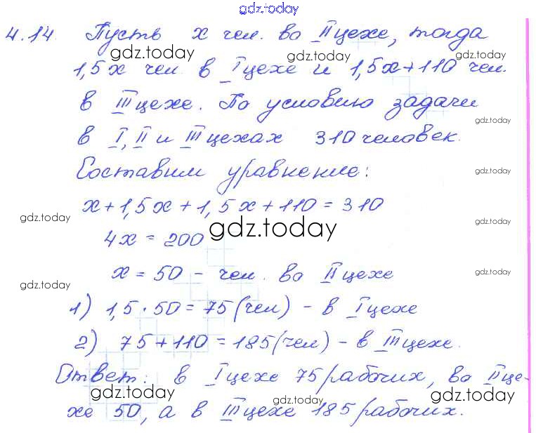 Ответы к § 4. Линейное уравнение с одной переменной Решение к главе 1 14 Задачнику по Алгебре для 7 класса Мордкович, Александрова Базовый уровень Мнемозина 2013