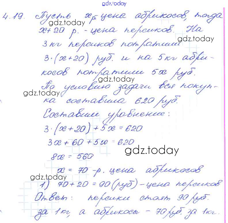 Ответы к § 4. Линейное уравнение с одной переменной Решение к главе 1 19 Задачнику по Алгебре для 7 класса Мордкович, Александрова Базовый уровень Мнемозина 2013
