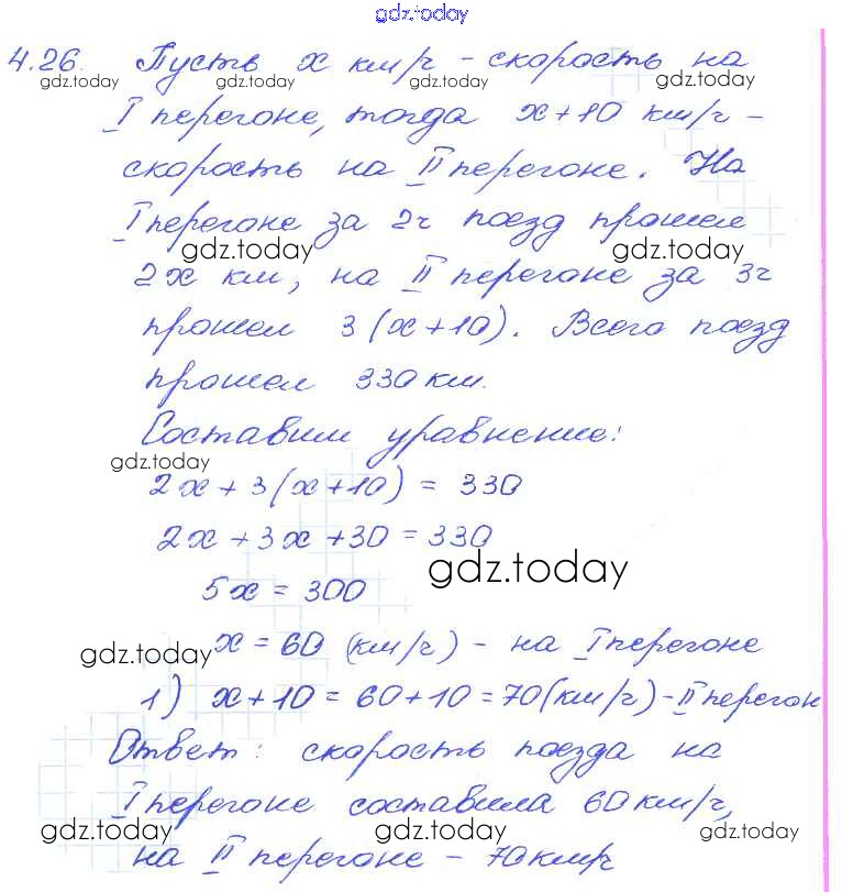Ответы к § 4. Линейное уравнение с одной переменной Решение к главе 1 26 Задачнику по Алгебре для 7 класса Мордкович, Александрова Базовый уровень Мнемозина 2013