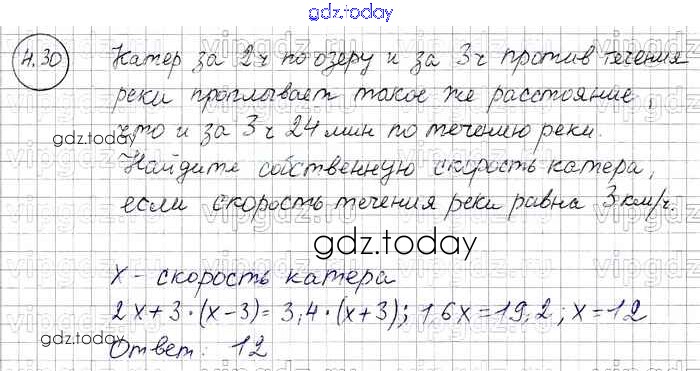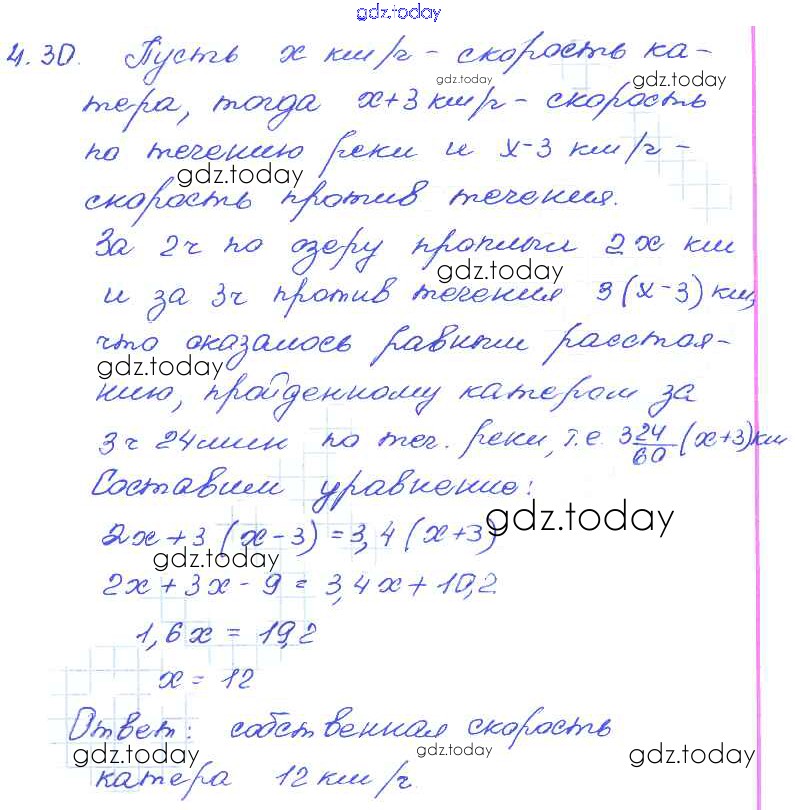 Ответы к § 4. Линейное уравнение с одной переменной Решение к главе 1 30 Задачнику по Алгебре для 7 класса Мордкович, Александрова Базовый уровень Мнемозина 2013