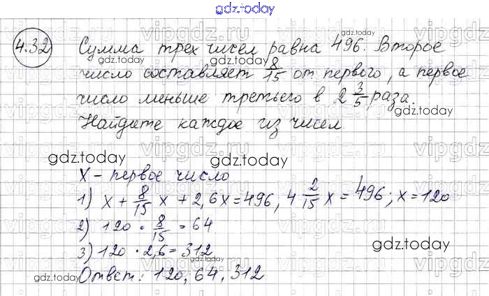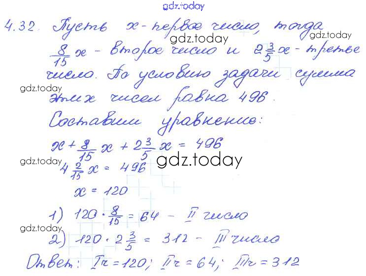 Ответы к § 4. Линейное уравнение с одной переменной Решение к главе 1 32 Задачнику по Алгебре для 7 класса Мордкович, Александрова Базовый уровень Мнемозина 2013