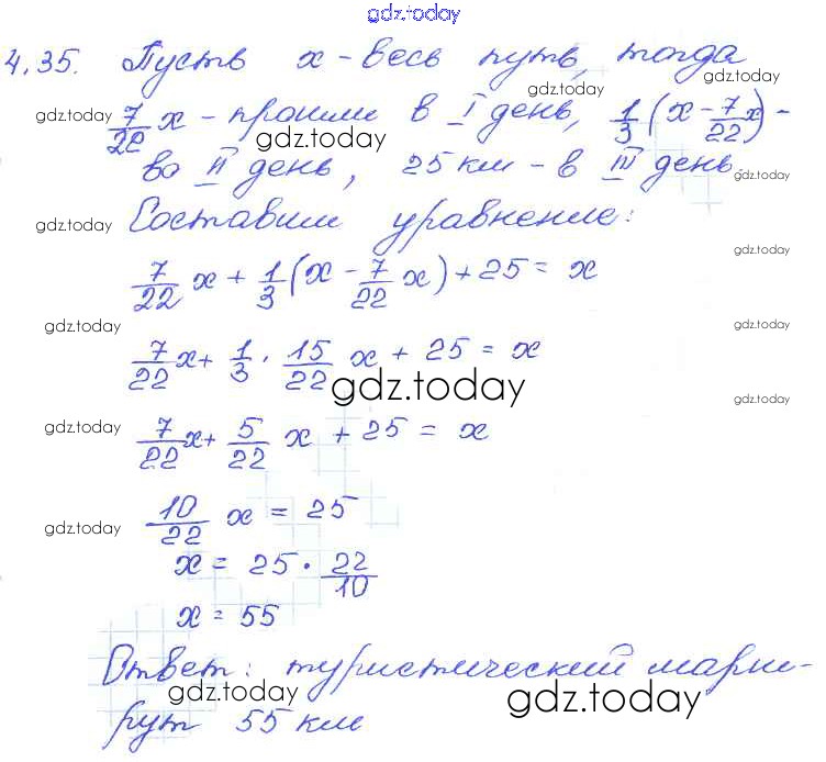 На страницах сайта gdz.today вы найдете учебный и вспомогательный материал, направленный на улучшения знаний школьной программы. ГДЗ - онлайн мир знаний § 4. Линейное уравнение с одной переменной Решение к главе 1 35 Задачнику по Алгебре для 7 класса Мордкович, Александрова Базовый уровень Мнемозина 2013