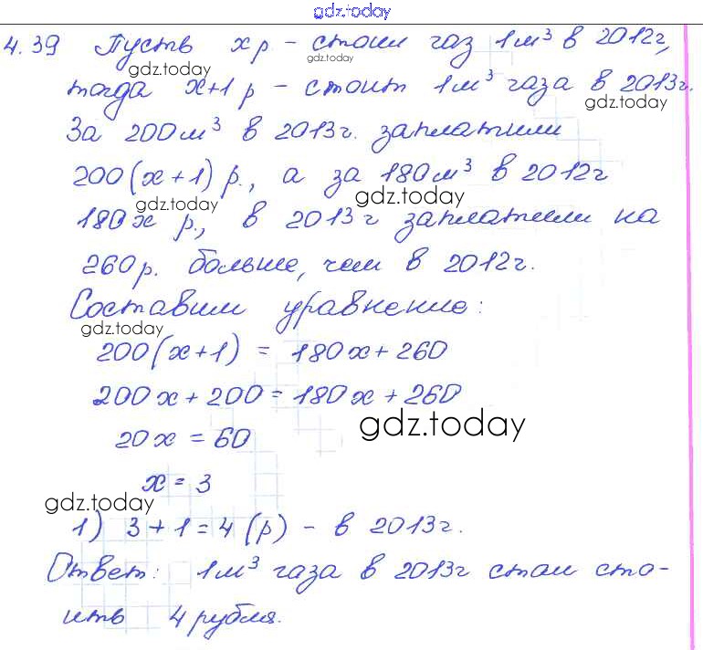 На страницах сайта gdz.today вы найдете учебный и вспомогательный материал, направленный на улучшения знаний школьной программы. ГДЗ - онлайн мир знаний § 4. Линейное уравнение с одной переменной Решение к главе 1 39 Задачнику по Алгебре для 7 класса Мордкович, Александрова Базовый уровень Мнемозина 2013