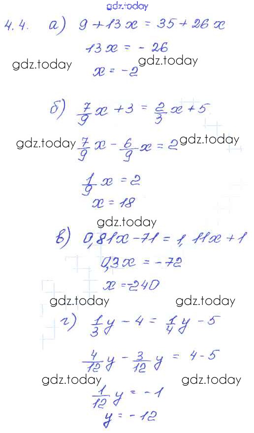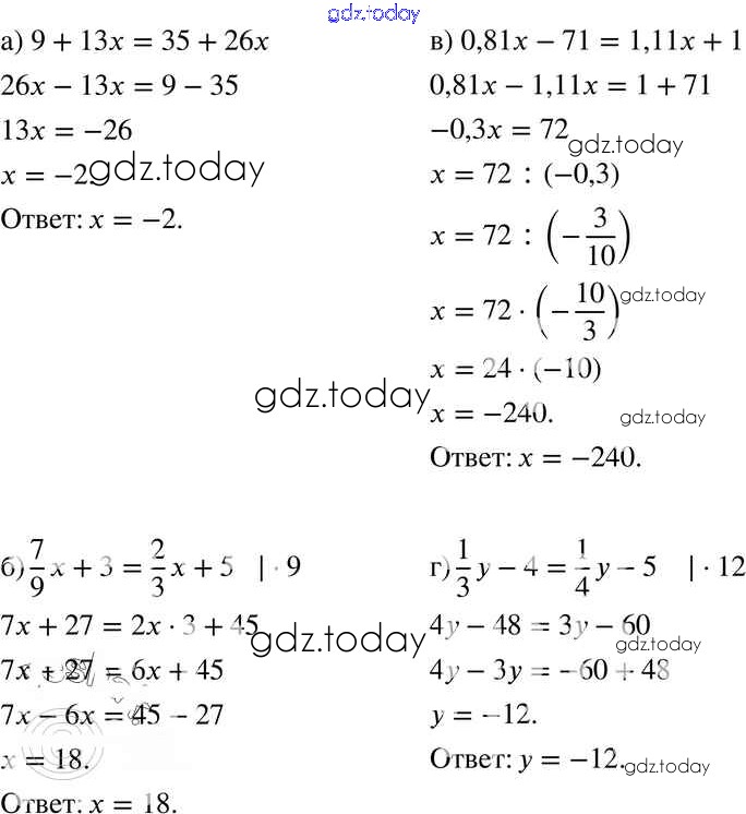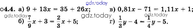Ответы к § 4. Линейное уравнение с одной переменной Решение к главе 1 4 Задачнику по Алгебре для 7 класса Мордкович, Александрова Базовый уровень Мнемозина 2013