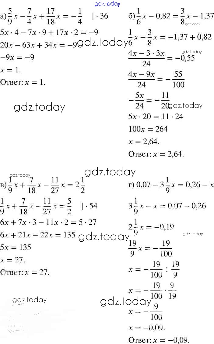 Ответы к § 4. Линейное уравнение с одной переменной Решение к главе 1 6 Задачнику по Алгебре для 7 класса Мордкович, Александрова Базовый уровень Мнемозина 2013
