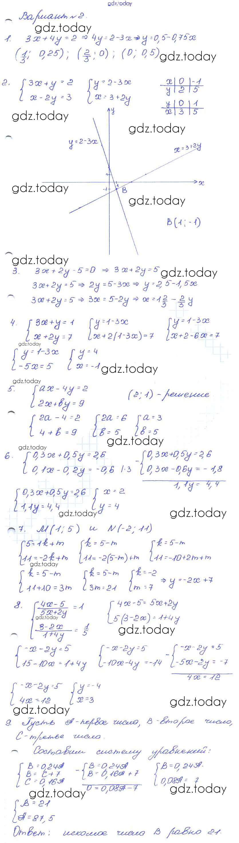 Ответы к № 3 Решение к домашним контрольным работам 2 Задачнику по Алгебре для 7 класса Мордкович, Александрова Базовый уровень Мнемозина 2013