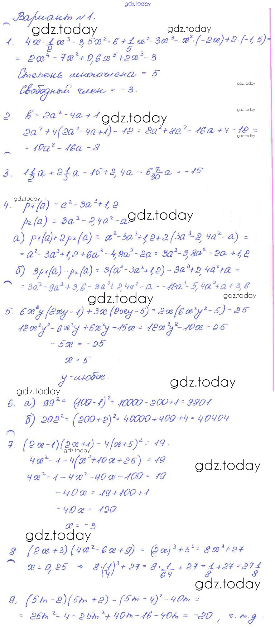 Ответы к № 6 Решение к домашним контрольным работам 1 Задачнику по Алгебре для 7 класса Мордкович, Александрова Базовый уровень Мнемозина 2013