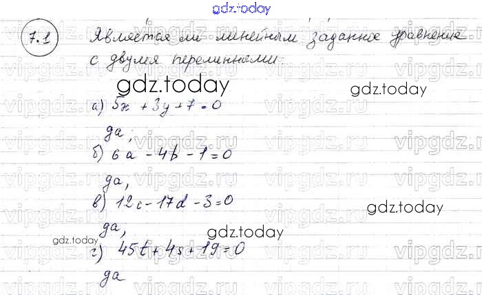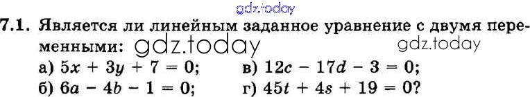На страницах сайта gdz.today вы найдете учебный и вспомогательный материал, направленный на улучшения знаний школьной программы. ГДЗ - онлайн мир знаний § 7. Линейное уравнение с двумя переменными и его график Решение к главе 2 1 Задачнику по Алгебре для 7 класса Мордкович, Александрова Базовый уровень Мнемозина 2013