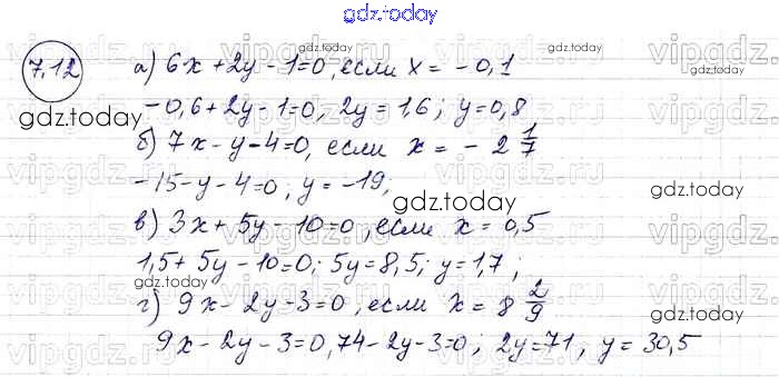 На страницах сайта gdz.today вы найдете учебный и вспомогательный материал, направленный на улучшения знаний школьной программы. ГДЗ - онлайн мир знаний § 7. Линейное уравнение с двумя переменными и его график Решение к главе 2 12 Задачнику по Алгебре для 7 класса Мордкович, Александрова Базовый уровень Мнемозина 2013