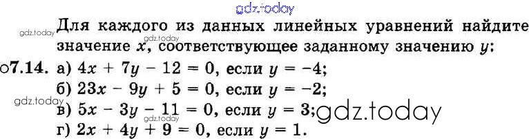 На страницах сайта gdz.today вы найдете учебный и вспомогательный материал, направленный на улучшения знаний школьной программы. ГДЗ - онлайн мир знаний § 7. Линейное уравнение с двумя переменными и его график Решение к главе 2 14 Задачнику по Алгебре для 7 класса Мордкович, Александрова Базовый уровень Мнемозина 2013