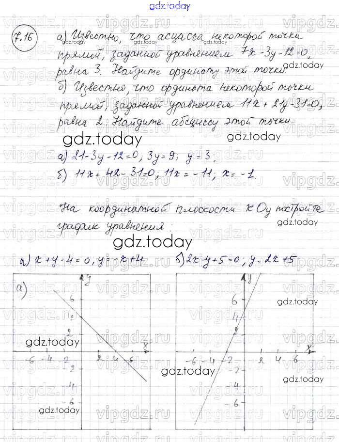 На страницах сайта gdz.today вы найдете учебный и вспомогательный материал, направленный на улучшения знаний школьной программы. ГДЗ - онлайн мир знаний § 7. Линейное уравнение с двумя переменными и его график Решение к главе 2 16 Задачнику по Алгебре для 7 класса Мордкович, Александрова Базовый уровень Мнемозина 2013