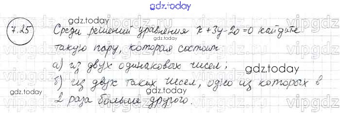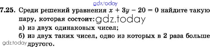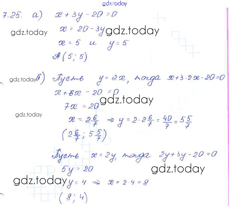 На страницах сайта gdz.today вы найдете учебный и вспомогательный материал, направленный на улучшения знаний школьной программы. ГДЗ - онлайн мир знаний § 7. Линейное уравнение с двумя переменными и его график Решение к главе 2 25 Задачнику по Алгебре для 7 класса Мордкович, Александрова Базовый уровень Мнемозина 2013