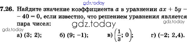 На страницах сайта gdz.today вы найдете учебный и вспомогательный материал, направленный на улучшения знаний школьной программы. ГДЗ - онлайн мир знаний § 7. Линейное уравнение с двумя переменными и его график Решение к главе 2 26 Задачнику по Алгебре для 7 класса Мордкович, Александрова Базовый уровень Мнемозина 2013