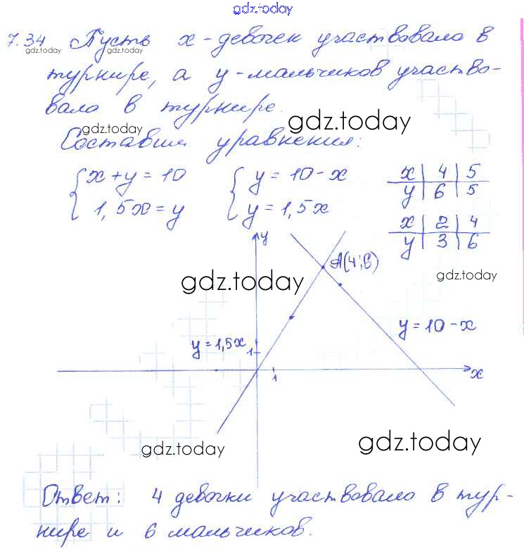 Ответы к § 7. Линейное уравнение с двумя переменными и его график Решение к главе 2 34 Задачнику по Алгебре для 7 класса Мордкович, Александрова Базовый уровень Мнемозина 2013