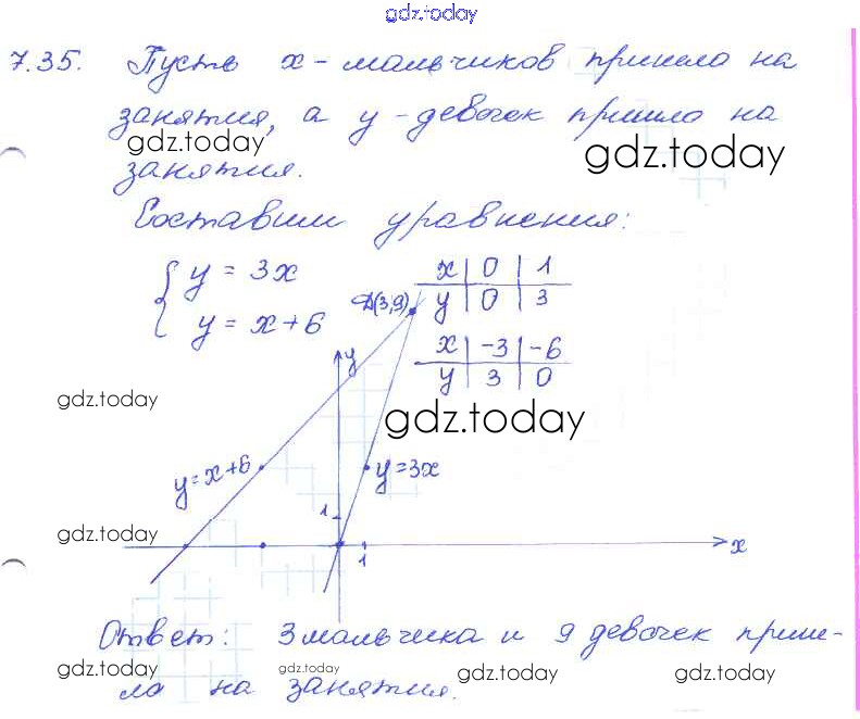 На страницах сайта gdz.today вы найдете учебный и вспомогательный материал, направленный на улучшения знаний школьной программы. ГДЗ - онлайн мир знаний § 7. Линейное уравнение с двумя переменными и его график Решение к главе 2 35 Задачнику по Алгебре для 7 класса Мордкович, Александрова Базовый уровень Мнемозина 2013