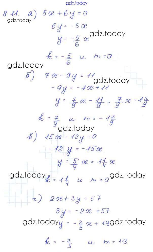 Ответы к § 8. Линейная функция и ее график Решение к главе 2 11 Задачнику по Алгебре для 7 класса Мордкович, Александрова Базовый уровень Мнемозина 2013