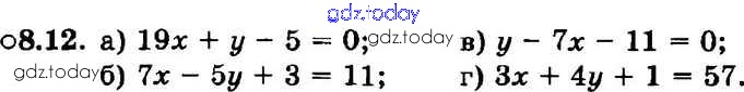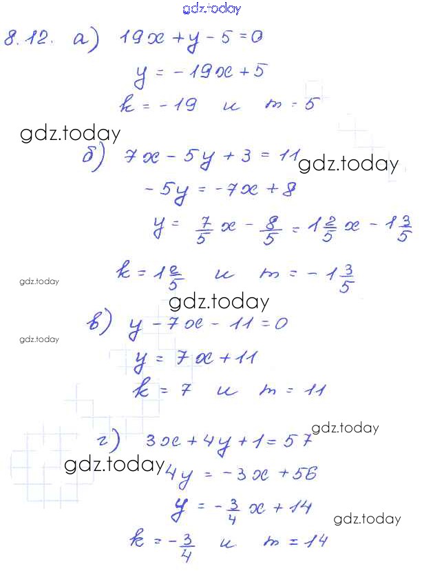 Ответы к § 8. Линейная функция и ее график Решение к главе 2 12 Задачнику по Алгебре для 7 класса Мордкович, Александрова Базовый уровень Мнемозина 2013