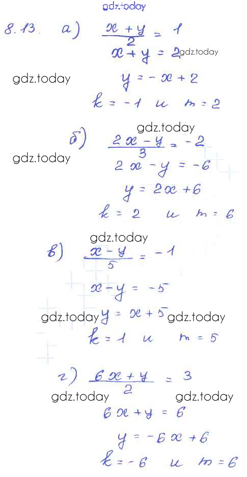 Ответы к § 8. Линейная функция и ее график Решение к главе 2 13 Задачнику по Алгебре для 7 класса Мордкович, Александрова Базовый уровень Мнемозина 2013