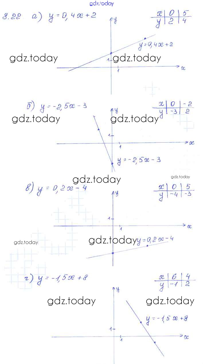 Ответы к § 8. Линейная функция и ее график Решение к главе 2 22 Задачнику по Алгебре для 7 класса Мордкович, Александрова Базовый уровень Мнемозина 2013