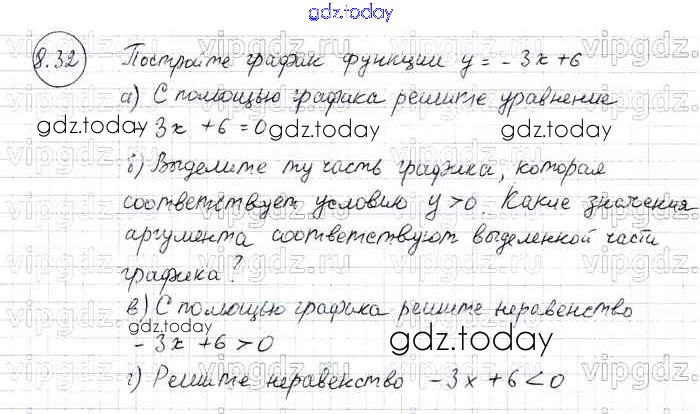 На страницах сайта gdz.today вы найдете учебный и вспомогательный материал, направленный на улучшения знаний школьной программы. ГДЗ - онлайн мир знаний § 8. Линейная функция и ее график Решение к главе 2 32 Задачнику по Алгебре для 7 класса Мордкович, Александрова Базовый уровень Мнемозина 2013