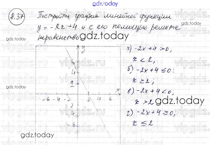 На страницах сайта gdz.today вы найдете учебный и вспомогательный материал, направленный на улучшения знаний школьной программы. ГДЗ - онлайн мир знаний § 8. Линейная функция и ее график Решение к главе 2 37 Задачнику по Алгебре для 7 класса Мордкович, Александрова Базовый уровень Мнемозина 2013