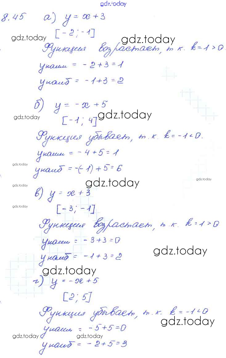 На страницах сайта gdz.today вы найдете учебный и вспомогательный материал, направленный на улучшения знаний школьной программы. ГДЗ - онлайн мир знаний § 8. Линейная функция и ее график Решение к главе 2 45 Задачнику по Алгебре для 7 класса Мордкович, Александрова Базовый уровень Мнемозина 2013