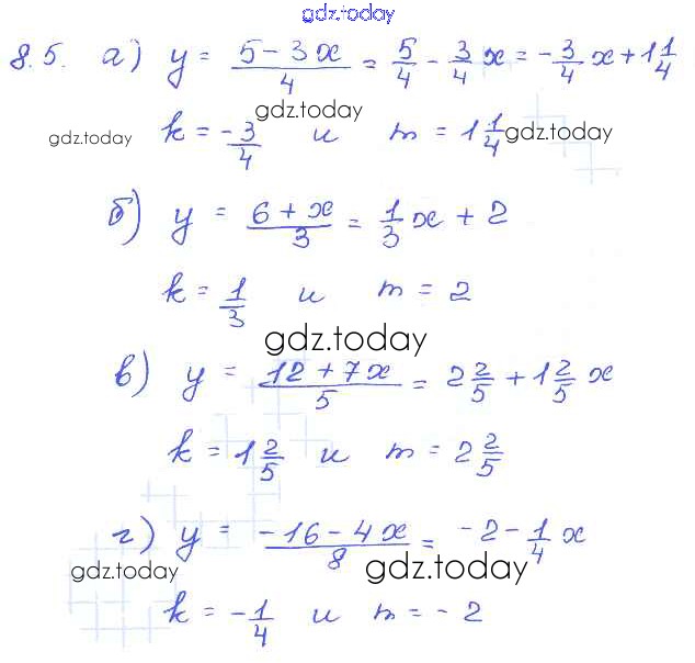 Ответы к § 8. Линейная функция и ее график Решение к главе 2 5 Задачнику по Алгебре для 7 класса Мордкович, Александрова Базовый уровень Мнемозина 2013