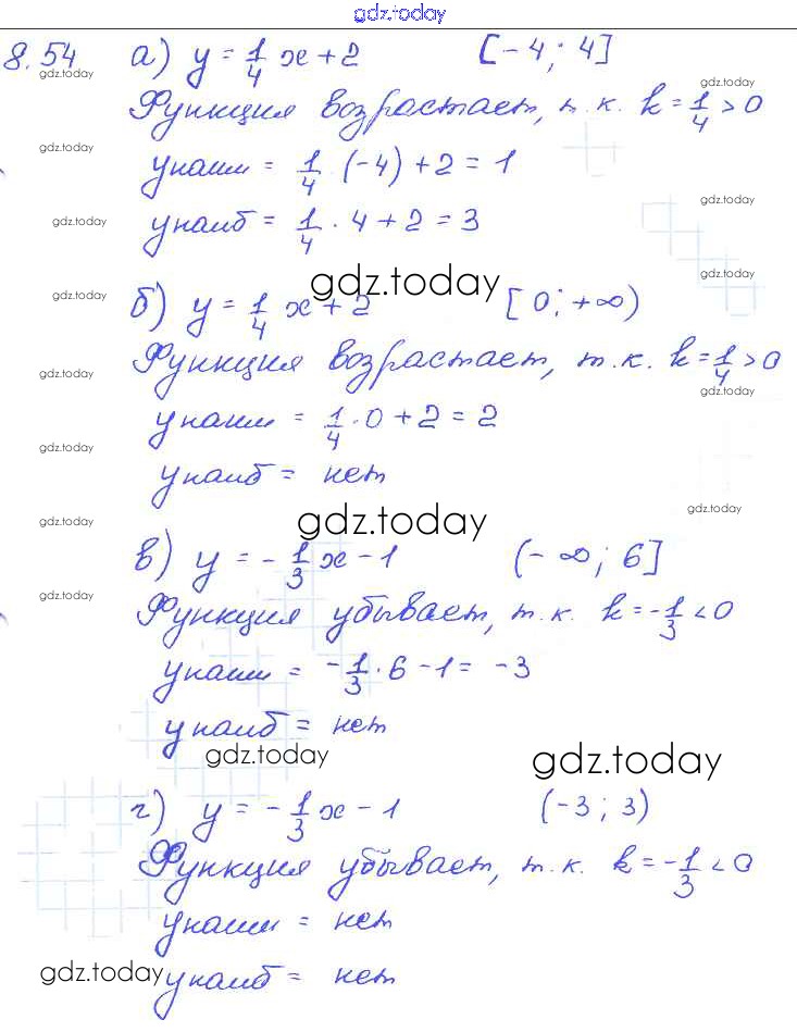На страницах сайта gdz.today вы найдете учебный и вспомогательный материал, направленный на улучшения знаний школьной программы. ГДЗ - онлайн мир знаний § 8. Линейная функция и ее график Решение к главе 2 54 Задачнику по Алгебре для 7 класса Мордкович, Александрова Базовый уровень Мнемозина 2013