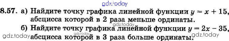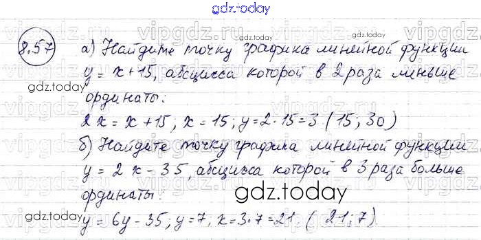 На страницах сайта gdz.today вы найдете учебный и вспомогательный материал, направленный на улучшения знаний школьной программы. ГДЗ - онлайн мир знаний § 8. Линейная функция и ее график Решение к главе 2 57 Задачнику по Алгебре для 7 класса Мордкович, Александрова Базовый уровень Мнемозина 2013