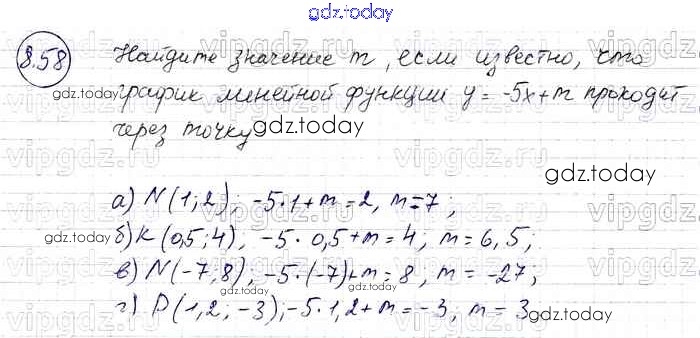 На страницах сайта gdz.today вы найдете учебный и вспомогательный материал, направленный на улучшения знаний школьной программы. ГДЗ - онлайн мир знаний § 8. Линейная функция и ее график Решение к главе 2 58 Задачнику по Алгебре для 7 класса Мордкович, Александрова Базовый уровень Мнемозина 2013