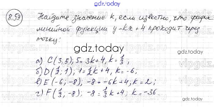 На страницах сайта gdz.today вы найдете учебный и вспомогательный материал, направленный на улучшения знаний школьной программы. ГДЗ - онлайн мир знаний § 8. Линейная функция и ее график Решение к главе 2 59 Задачнику по Алгебре для 7 класса Мордкович, Александрова Базовый уровень Мнемозина 2013