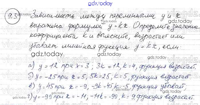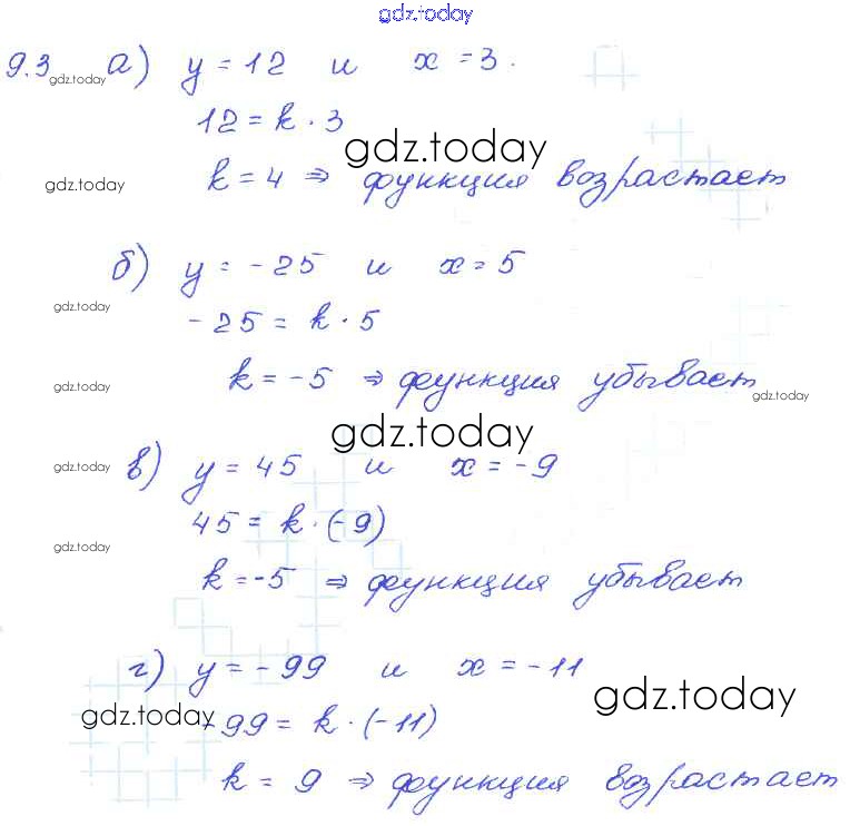 Ответы к § 9. Линейная функция у = кх Решение к главе 2 3 Задачнику по Алгебре для 7 класса Мордкович, Александрова Базовый уровень Мнемозина 2013