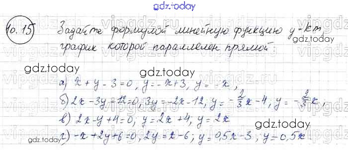 Ответы к § 10. Взаимное расположение графиков линейных функций Решение к главе 2 15 Задачнику по Алгебре для 7 класса Мордкович, Александрова Базовый уровень Мнемозина 2013