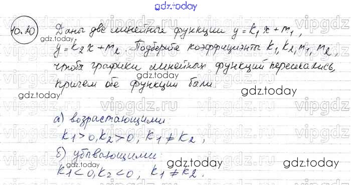 На страницах сайта gdz.today вы найдете учебный и вспомогательный материал, направленный на улучшения знаний школьной программы. ГДЗ - онлайн мир знаний § 10. Взаимное расположение графиков линейных функций Решение к главе 2 20 Задачнику по Алгебре для 7 класса Мордкович, Александрова Базовый уровень Мнемозина 2013