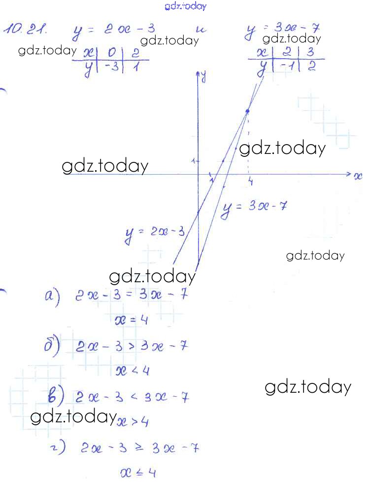 На страницах сайта gdz.today вы найдете учебный и вспомогательный материал, направленный на улучшения знаний школьной программы. ГДЗ - онлайн мир знаний § 10. Взаимное расположение графиков линейных функций Решение к главе 2 21 Задачнику по Алгебре для 7 класса Мордкович, Александрова Базовый уровень Мнемозина 2013