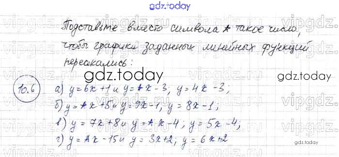 На страницах сайта gdz.today вы найдете учебный и вспомогательный материал, направленный на улучшения знаний школьной программы. ГДЗ - онлайн мир знаний § 10. Взаимное расположение графиков линейных функций Решение к главе 2 6 Задачнику по Алгебре для 7 класса Мордкович, Александрова Базовый уровень Мнемозина 2013