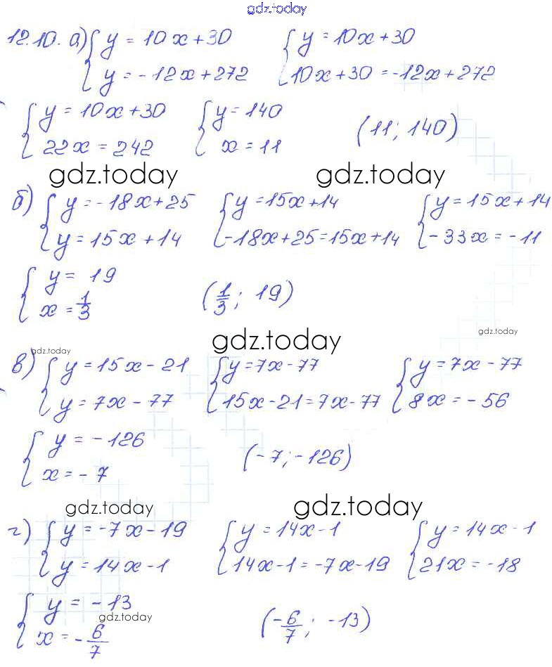 Ответы к § 12. Метод подстановки Решение к главе 3 10 Задачнику по Алгебре для 7 класса Мордкович, Александрова Базовый уровень Мнемозина 2013