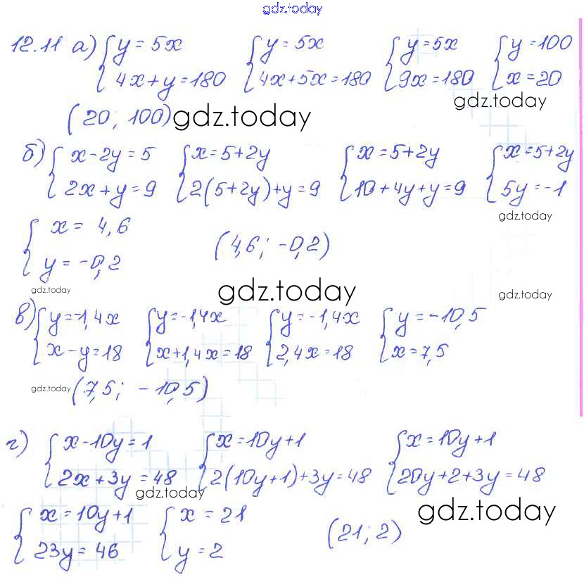 Ответы к § 12. Метод подстановки Решение к главе 3 11 Задачнику по Алгебре для 7 класса Мордкович, Александрова Базовый уровень Мнемозина 2013
