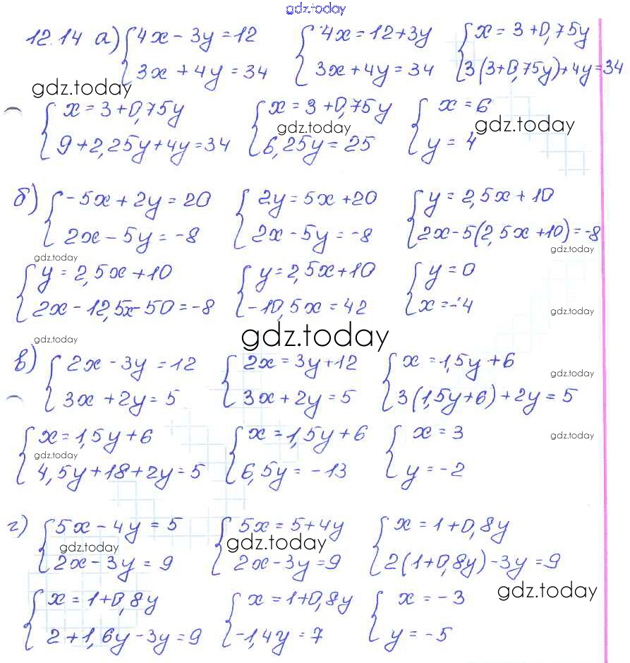 Ответы к § 12. Метод подстановки Решение к главе 3 14 Задачнику по Алгебре для 7 класса Мордкович, Александрова Базовый уровень Мнемозина 2013