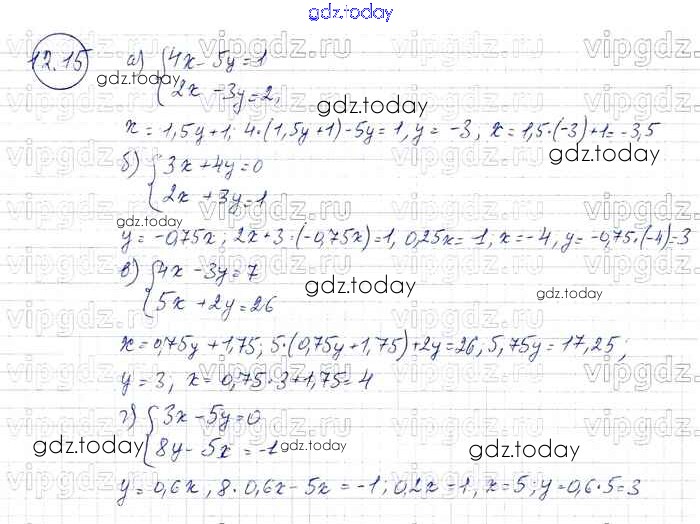 Ответы к § 12. Метод подстановки Решение к главе 3 15 Задачнику по Алгебре для 7 класса Мордкович, Александрова Базовый уровень Мнемозина 2013